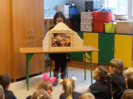 i przedstawiła uczniom śląską "Legendę o Skarbniku" w formie teatrzyku kamishibai.