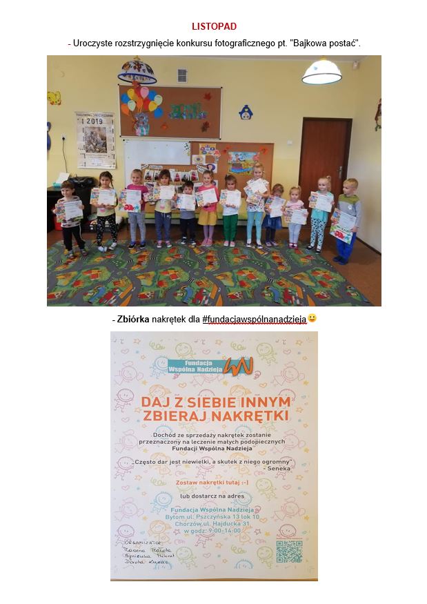 W miesiącu pażdzierniku został ogłoszony konkurs dla przedszkolaków pod hasłem: Książka przyjacielem dziecka.
