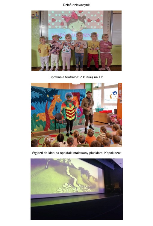 - Spotkanie teatralne pt. „Jaś i Małgosia” dla wszystkich przedszkolaków.