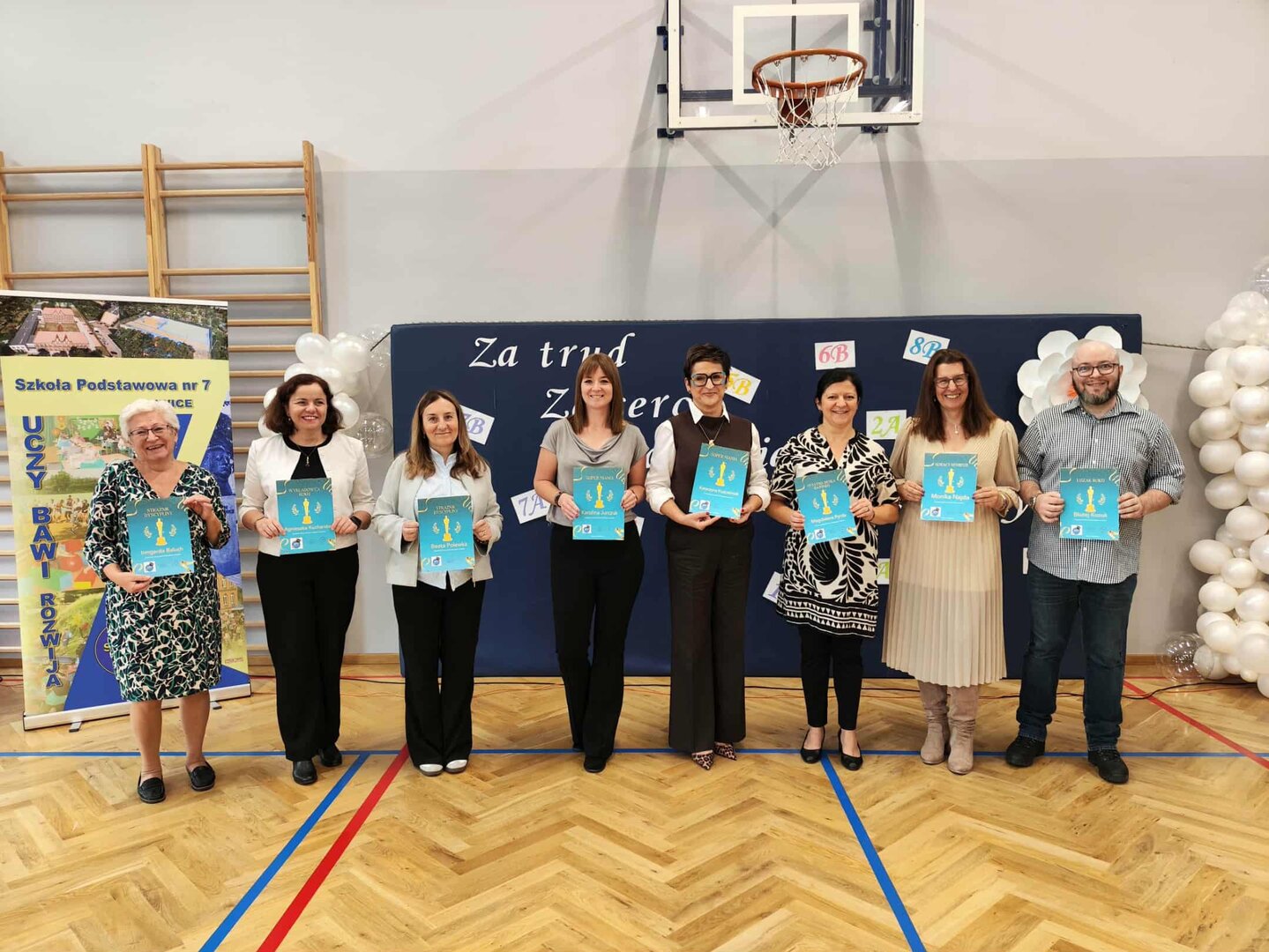 Na koniec uroczystości Pani Dyrektor złożyła życzenia wszystkim pracownikom szkoły i przybyłym emerytom pracującym niegdyś w SP7.
