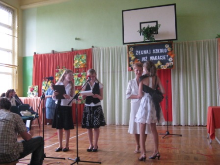 Pani Dyrektor wręcza dyplomy wzorowym uczniom.